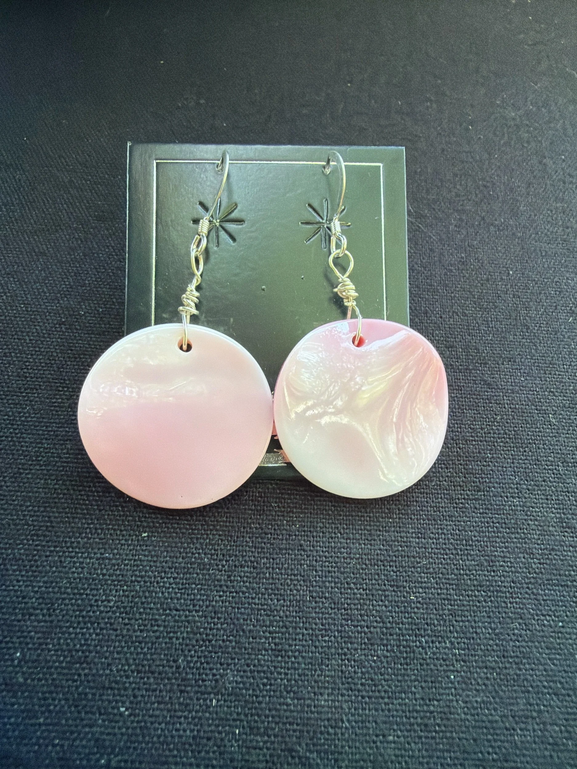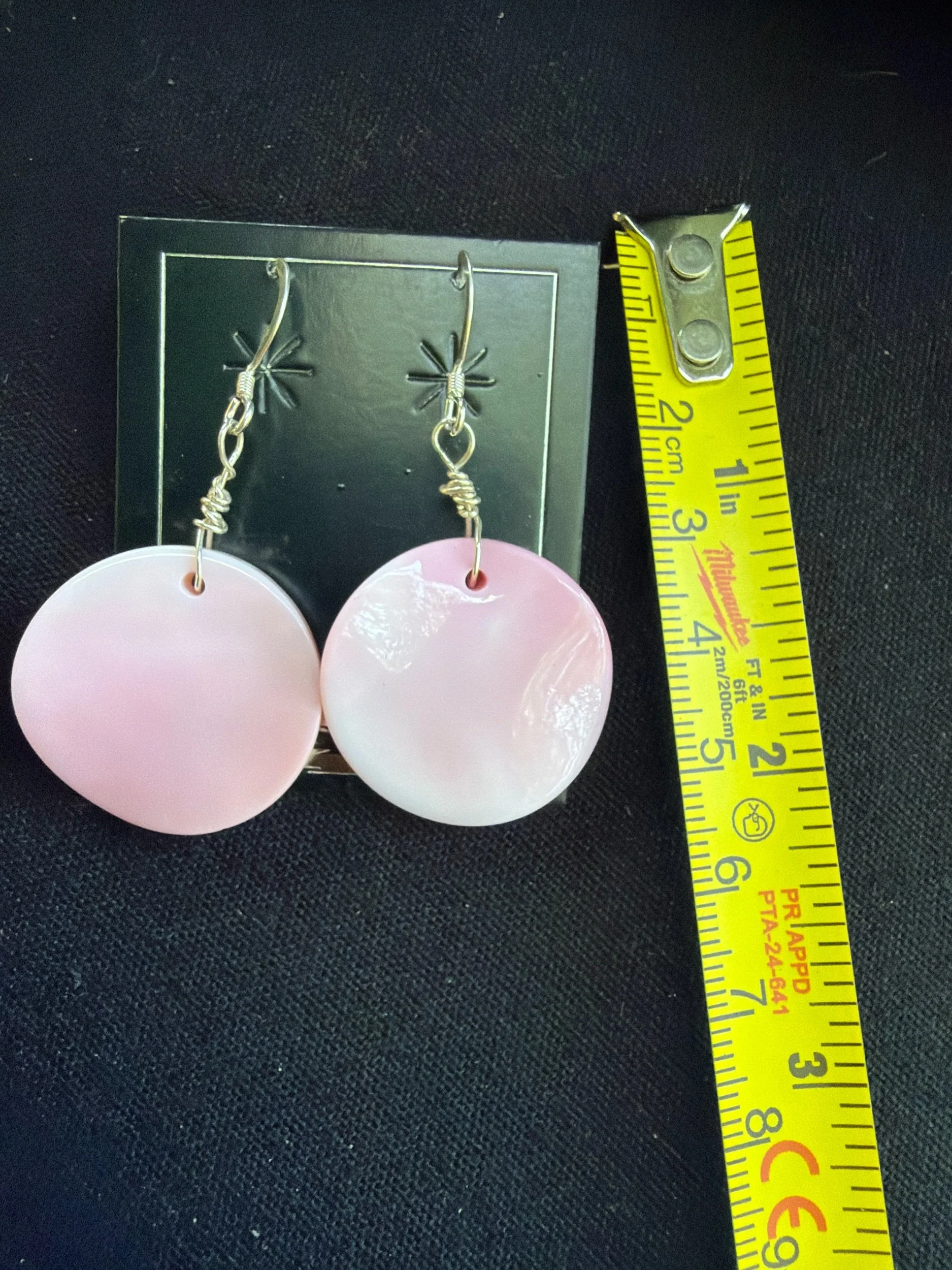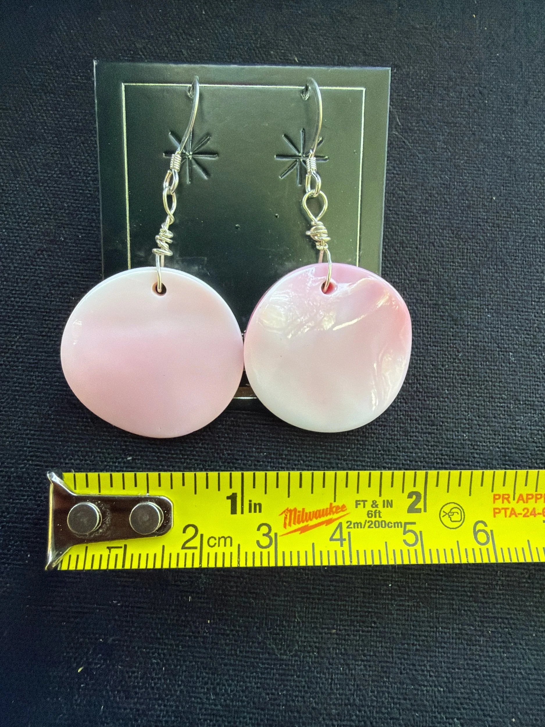 Gorgeous pink conch selling earrings. Sterling silver wire wrapping on conch shell. Handmade by Navajo artist.