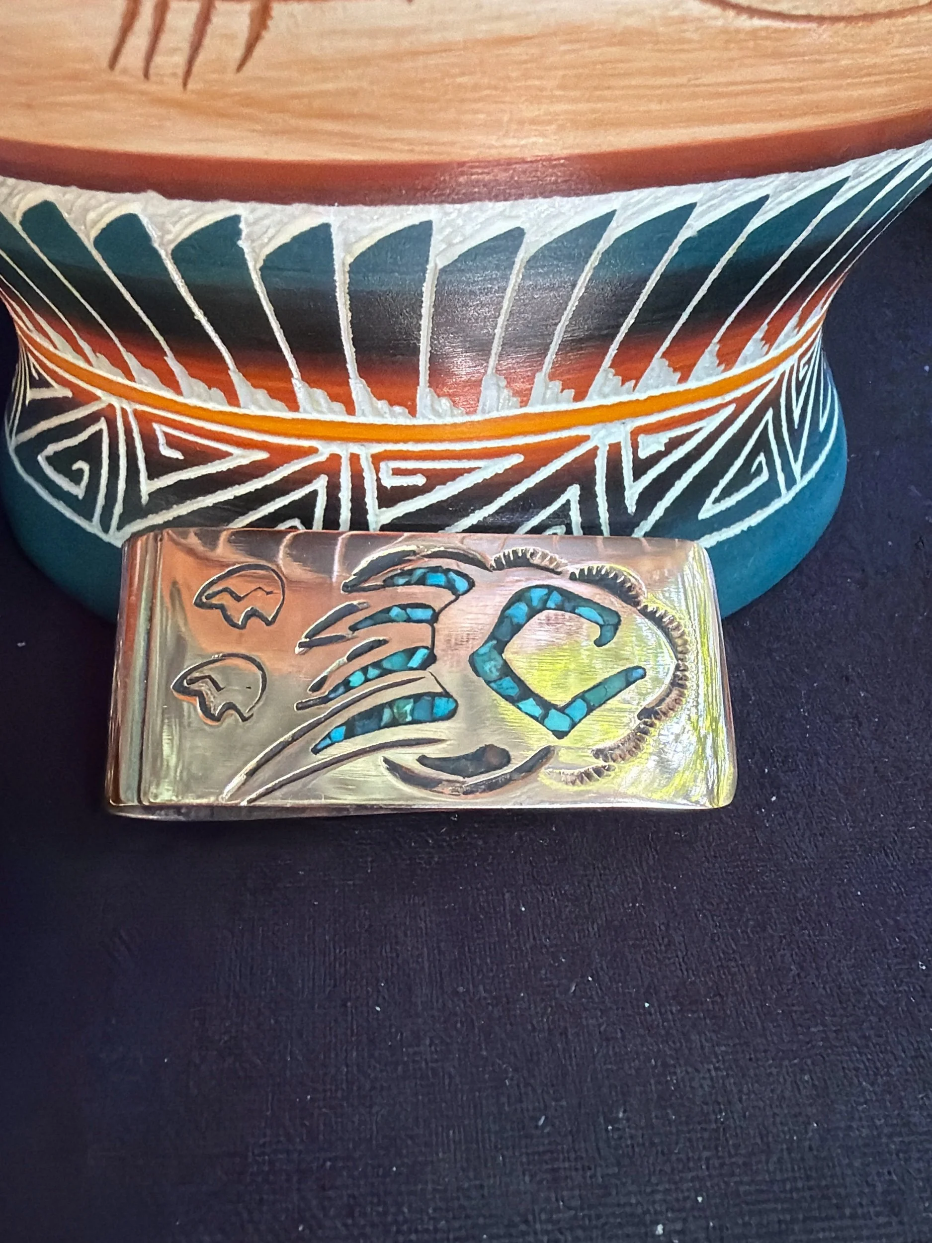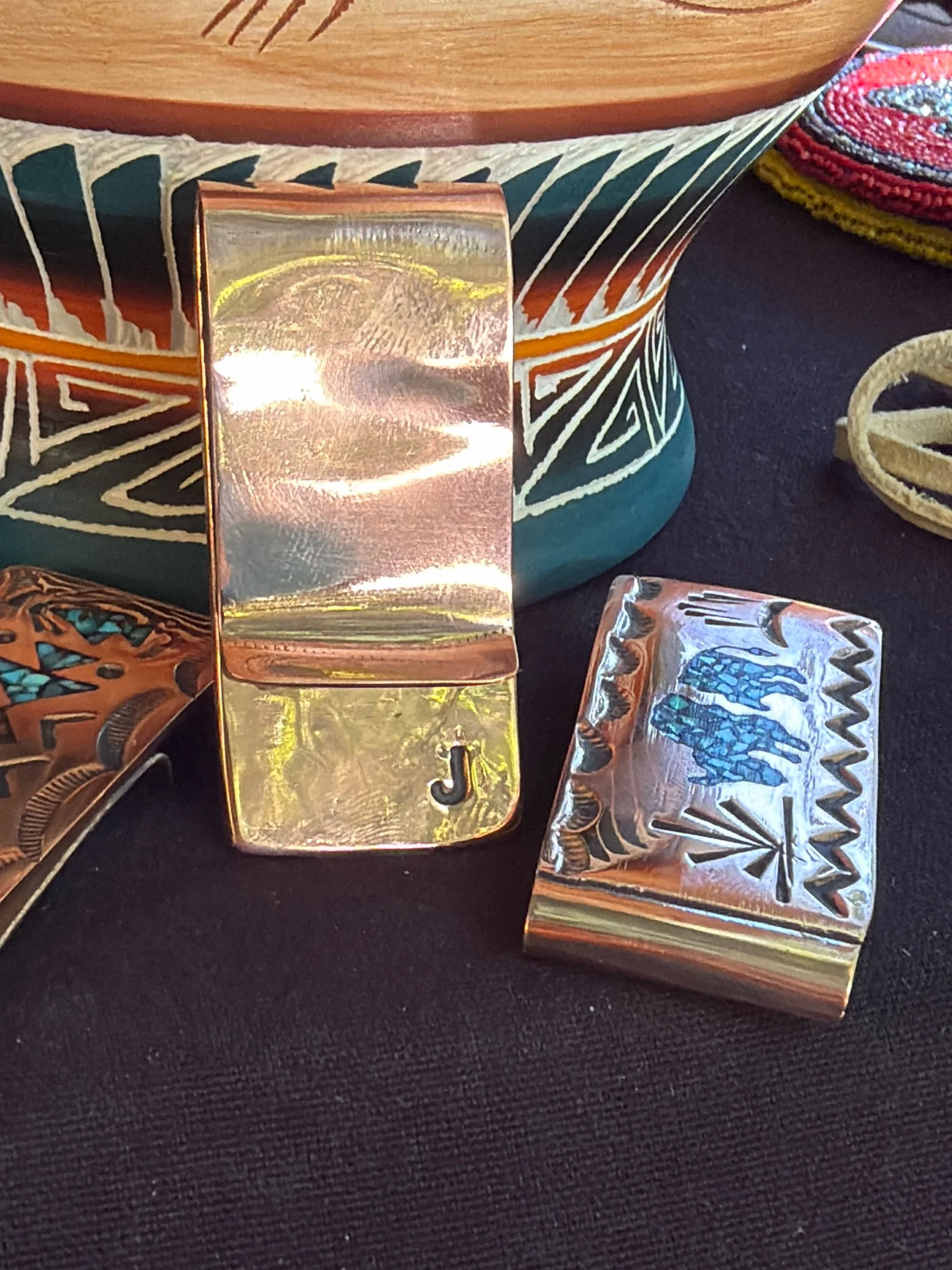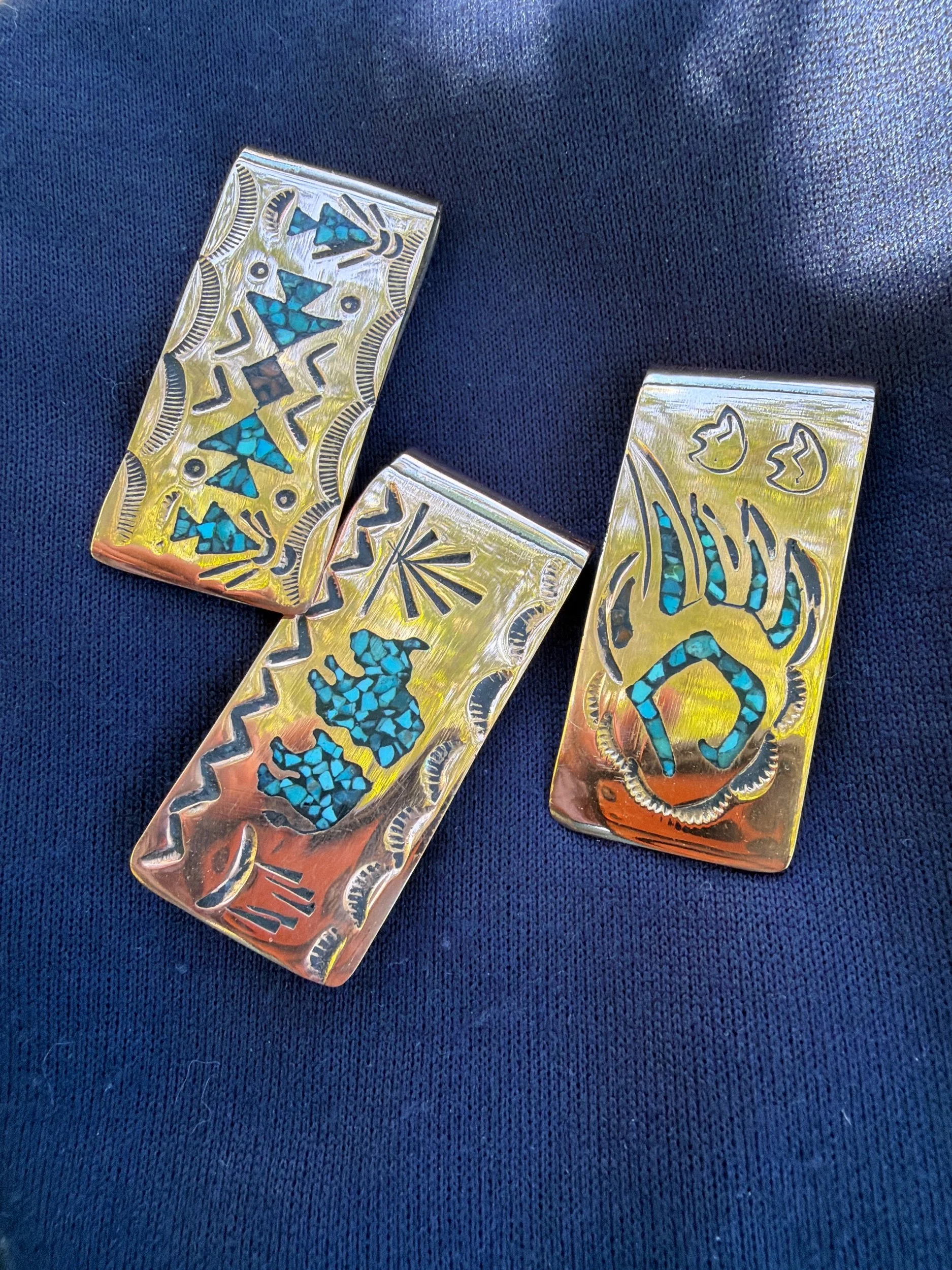 Money Clip. Copper handmade money clips. Turquoise chips inlaid in copper. Handmade by Navajo artist from Arizona.